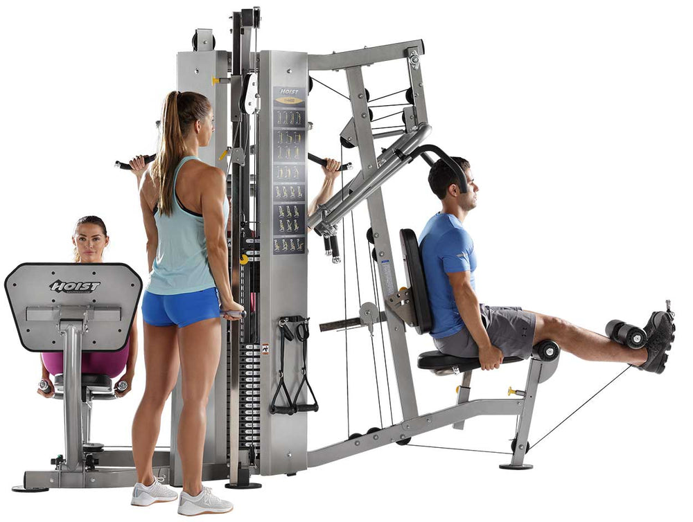 Now get ready for the next big innovation in home strength with three new HOIST products from the Mi Series of home gyms. Home products can be purchased through specialty fitness retailers throughout the world. The two front weight stacks are adjustable hilo pulleys.